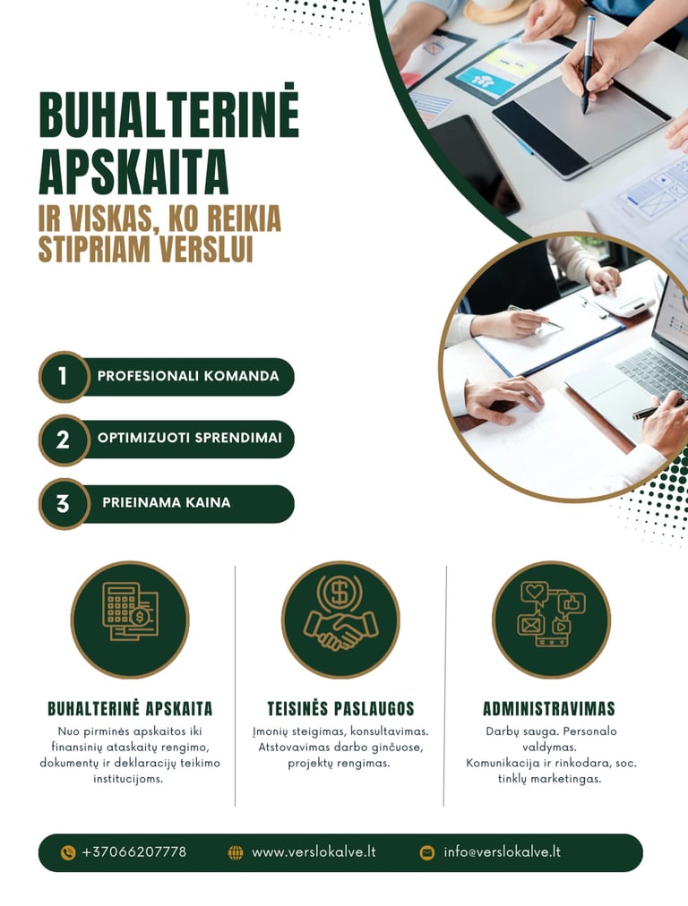 VIZIJA - Pasiekti aukštus rezultatus analizuojant rodiklius ir taikant naujausias rekomendacijas, kad Jūsų verslas būtų maksimaliai optimizuotas.